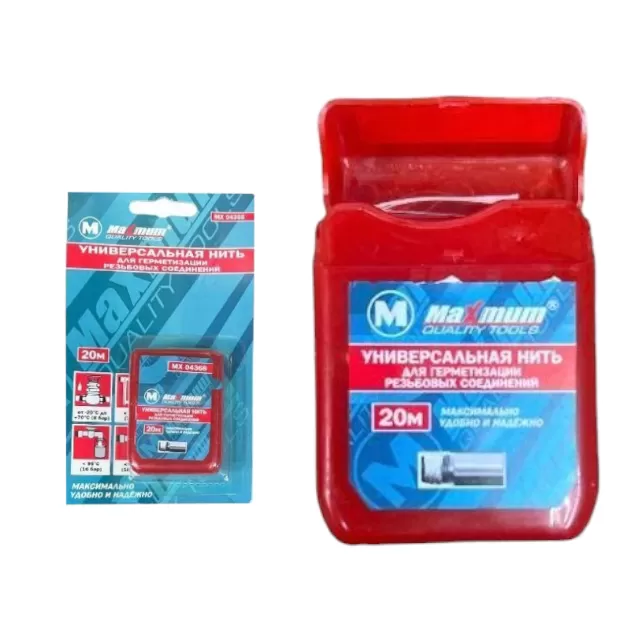 Фум-нить 20 м — это новый материал для герметизации пластиковых труб, который позволит устранить течь легко, просто намотав ее на резьбу и закрутив. Нить для герметизации плотно ложится на резьбу и не скользит, нужно ее в разы меньше и герметизирует она намного лучше чем лента, работая как резиновая прокладка. Позволяет регулировать герметичность соединения перед использованием (соединение остается разборным). Поставляется в удобной пластиковой тубе с лезвием для быстрого отсечения нити.